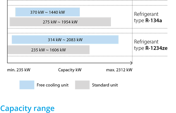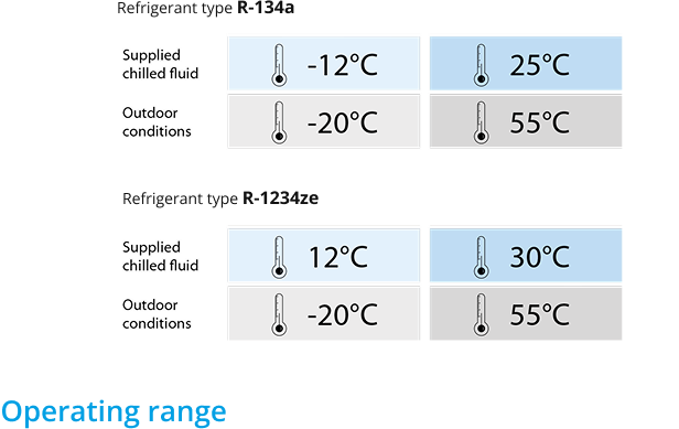 The TZ D units can operate in a wide range of conditions, making them suitable for a variety of applications. They can provide chilled water for applications such as ice rinks with temperatures as low as -15°C, while also being suitable for data centers that require higher evaporator outlet temperatures of up to 30°C. This versatility provides exceptional flexibility, allowing TZ D units to operate effectively in a wide range of